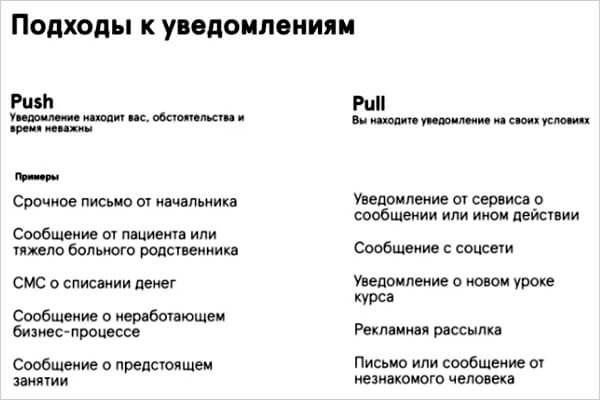 Глеб Калинин проводил вебинар на недоступном уже ресурсе, в котором рассказывал о сознательном отношении у технологиям. Больше всего мне понравилась мысль про «pull информации» — делать запрос информации сознательным действием, чтобы контролировать поступление, не наваливать на себя все подряд. Не «ты продуктивный молодец и со всем справишься», а «как по дороге, заваленной информацией, не умереть „.