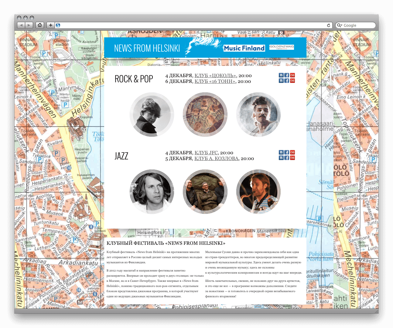 Для работы с концертами Гриши Гольденцвайга иногда требовались сайты. Иногда просто, чтобы они были, иногда это было моей инициативой. Вот такие были смешные, как сейчас бы назвали, лендинги.