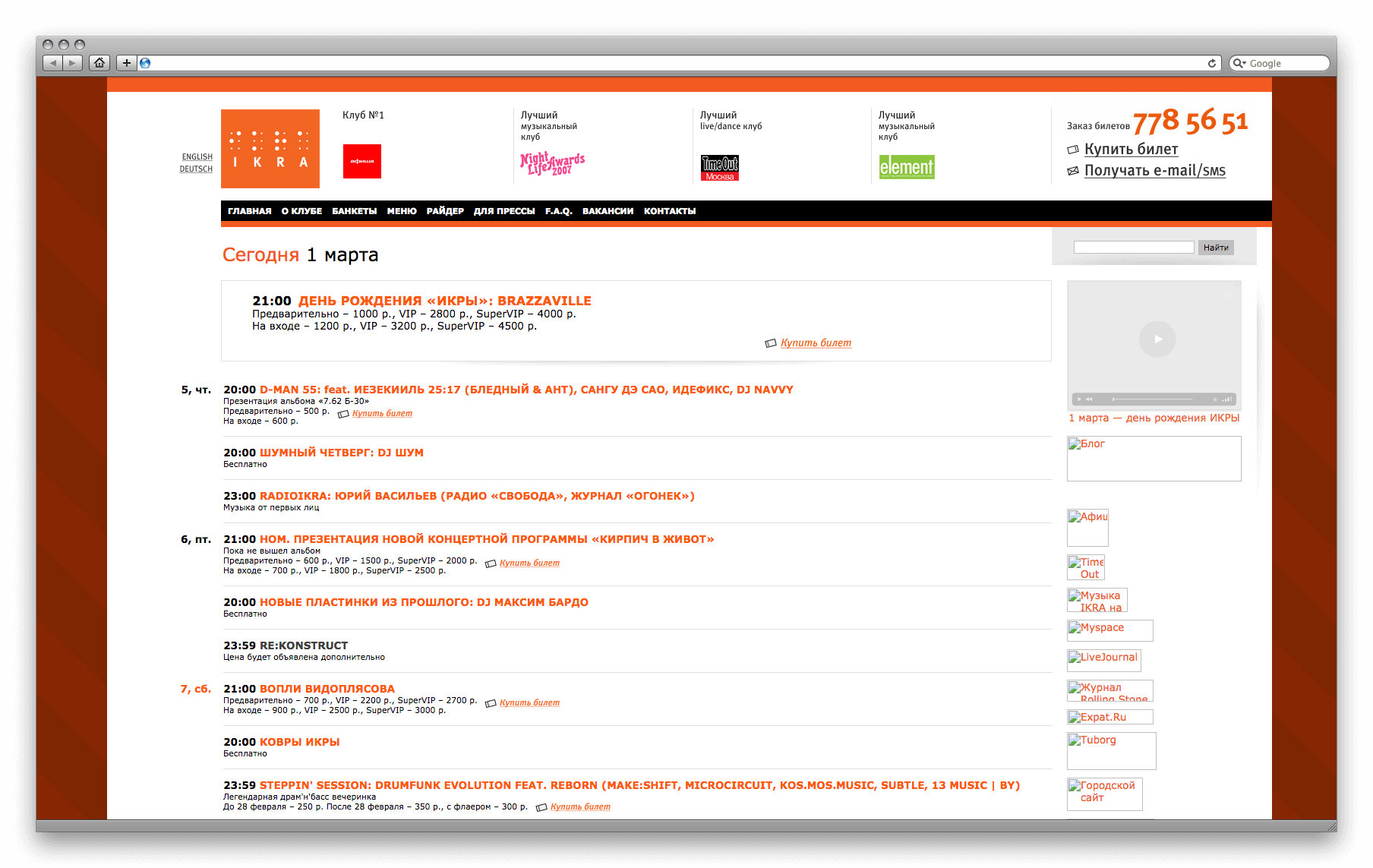 Сайт клуба IKRA, где я проработал полтора года, конечно, давно умер. Есть архив с копией всех материалов сайта и тонны видеозаписей с концертов на жестком диске. В архивах памяти множество незабываемых вечеров с артистами и прокачка английского.