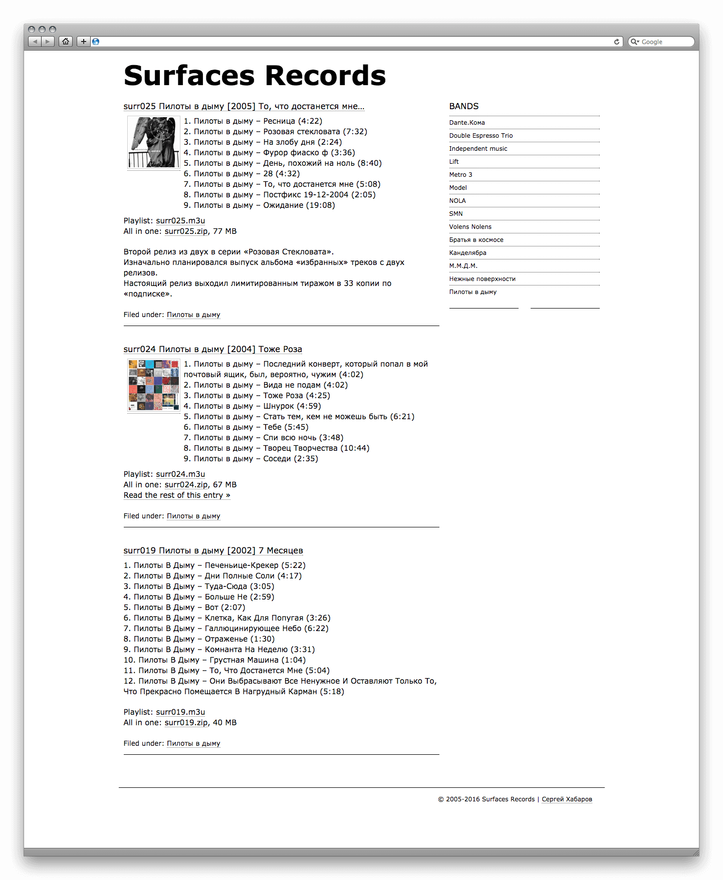 - Дима «Пилот» на хостинге «Поверхностей» сделал и выложил пару миксов из любимых треков, которые можно восстановить. Самого Димы уже нет.