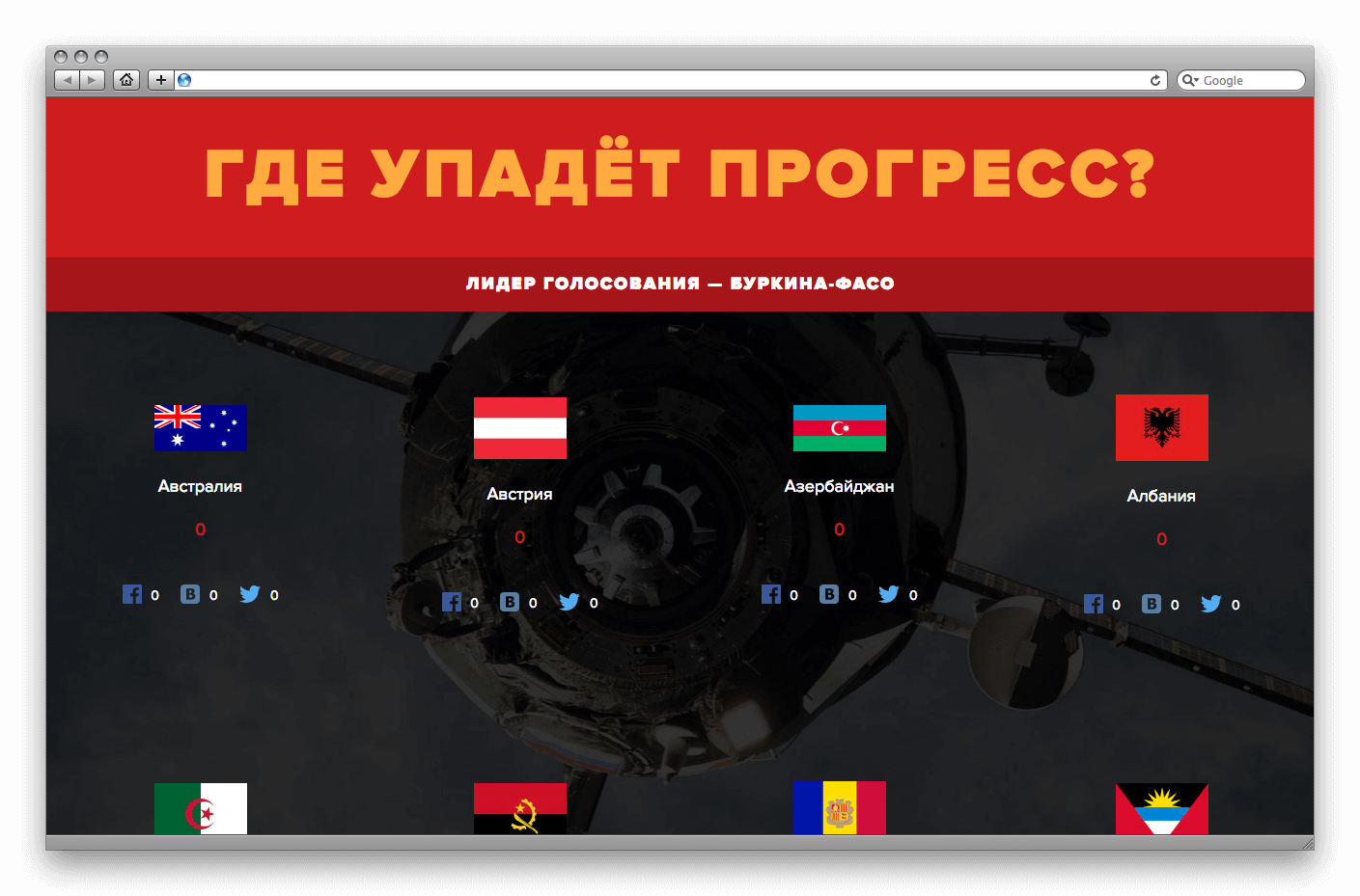 Голосование, в какой стране должен упасть спутник «Прогресс»