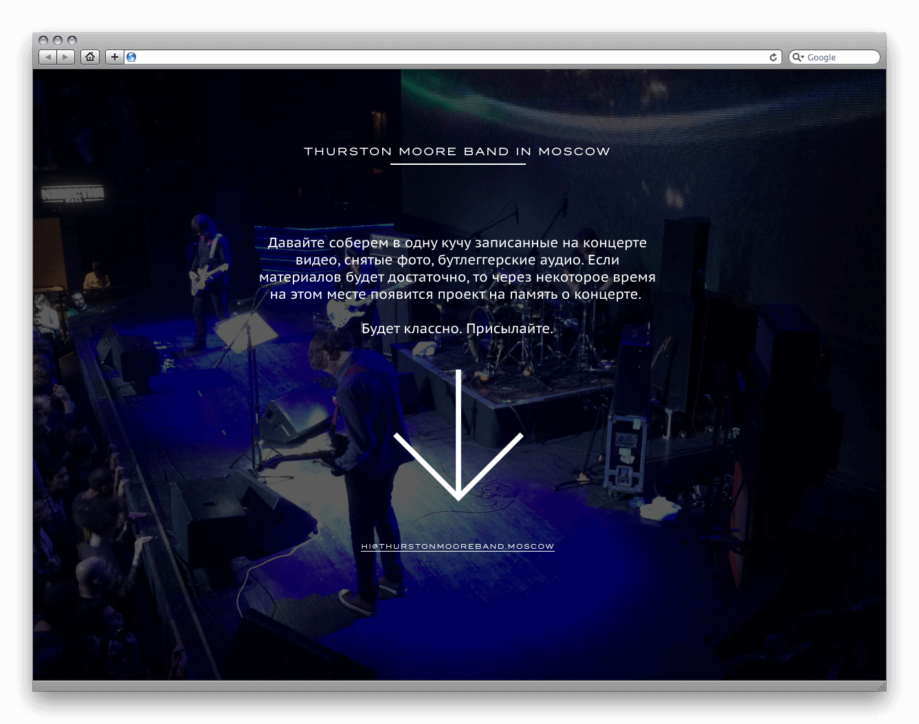 Концерт состоялся в прошлом году. Я собрал и выпросил у сообщества доступные материалы, чтобы сконструировать проект о концерте. Есть много фото, немного видео и полная запись концерта в аудио. Процесс создания проекта.